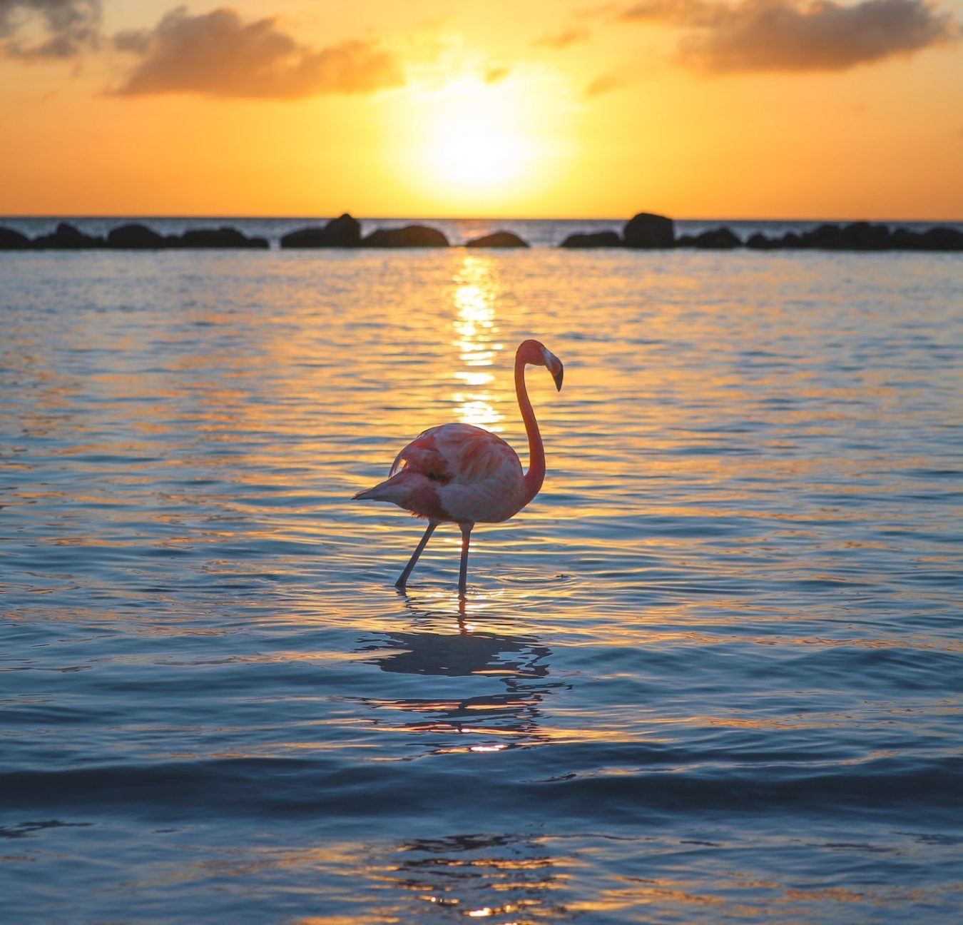 𝐅𝐥𝐚𝐦𝐢𝐧𝐠𝐨 𝐁𝐞𝐚𝐜𝐡 is a private beach on Renaissance Island where a handful of pink flamingos roam the sugary white sands and turquoise waters.